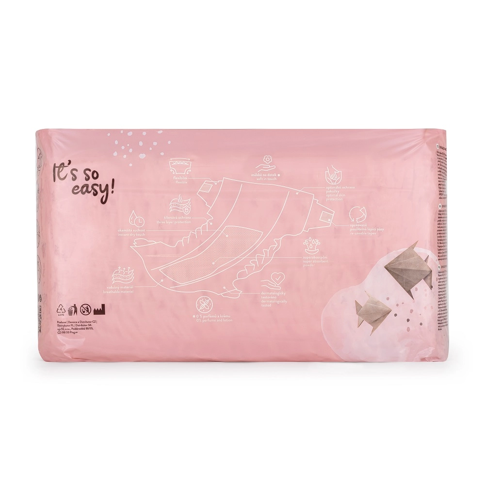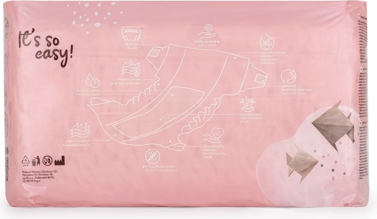 A lábaknál lévő rugalmas gumírozásnak, a nyúlékony derékrésznek és a többször visszazárható pántoknak köszönhetően a pelenka tökéletesen alkalmazkodik a baba testéhez, és aktív mozgás közben is kényelmes marad. A pelenkák illatanyagmentesek és latexmentesek, dermatológiailag igazoltak, és fiúknak-lányoknak egyaránt alkalmasak.
