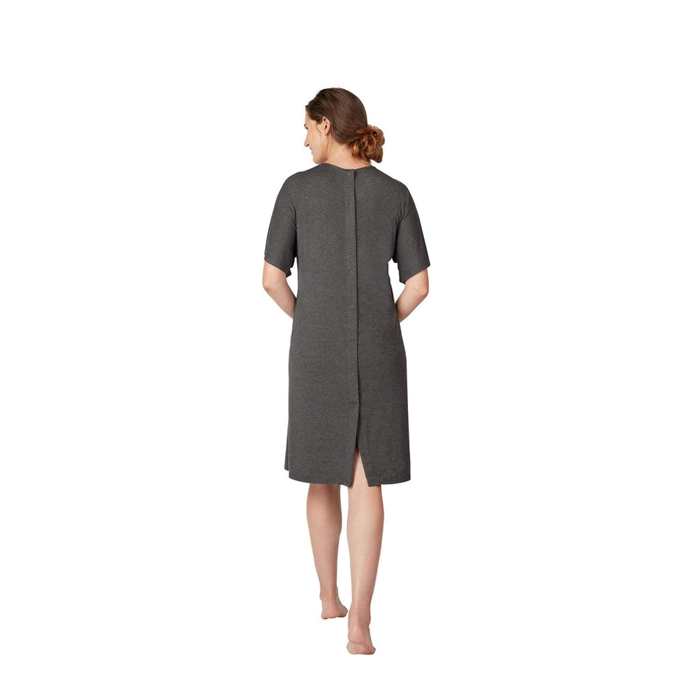 A praktikus és kényelmes FRIDA MOM szülős és szoptatós hálóing teljes, patentos hátrészt, gyors elülső hozzáférést bőr-bőr kontaktushoz és szoptatáshoz, valamint puha, légáteresztő jersey anyagot kínál zsebekkel. Az univerzális szabás könnyű, rugalmas és kellemes viselet – ideális a kórházban és a gyermekágy idején is.
