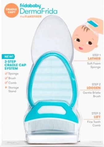 Fedezze fel a kíméletes megoldást a babák fejbőrére: a FRIDABABY DermaFrida FlakeFixer egy okos, 3 lépéses eszköz, amely segít a pikkelyeket felpuhítani, fellazítani és kifésülni a szeborreás dermatitisz okozta lerakódásokból. Újszülött kortól alkalmas, puha habszivacs fejjel, gyengéd kefével és sűrű fésűvel. Tartozéka egy tartó állvány tapadókoronggal a higiénikus tároláshoz.