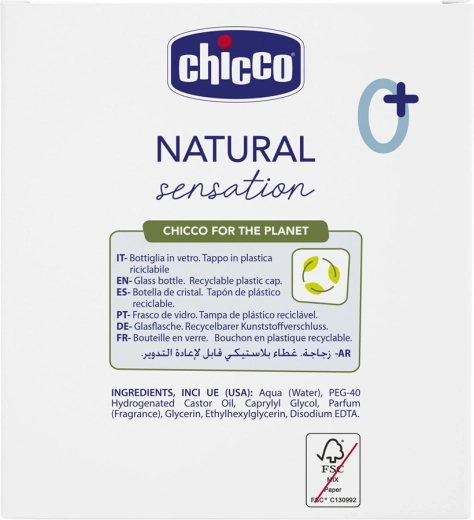 A CHICCO Natural Sensation gyengéd gyerek parfümözött víz kiemeli a baba természetes illatát, miközben tiszteletben tartja az érzékeny bőrt. Friss és finom illatú, alkoholmentes, és születéstől biztonságos. Olaszországban készült, dermatológiailag és gyermekorvosilag tesztelt.