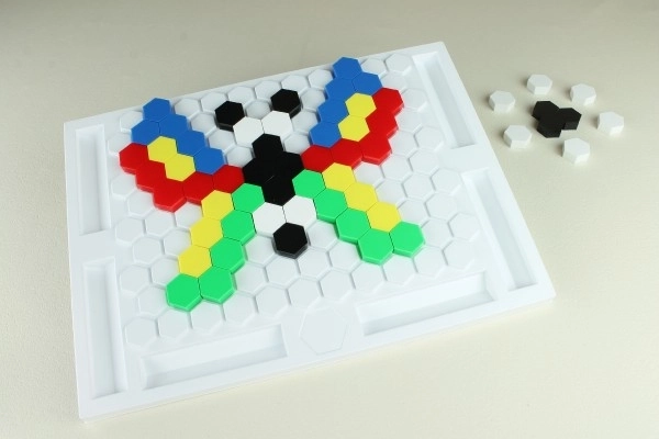 A "Méhecske díszíti a kaptárt" mozaikakészlet nemcsak egy szórakoztató játék, hanem egy kiváló oktatási eszköz is az óvodások számára. Fejleszti a motorikus készségeket és tanítja az ábécét vagy az alapvető számolást.