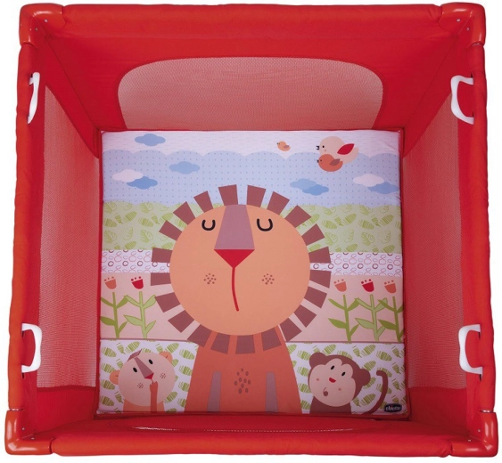 A Chicco gyermek járóka játékos, Lion mintás játszószőnyeggel egyesíti a biztonságot, a kényelmet és a vidám stimulációt. A színes, puha alátét állatmintákkal fejleszti az érzékszerveket, és járókán kívül, önállóan is használható. A hálós oldalak biztosítják a szellőzést és az átláthatóságot, míg a cipzárral zárható bejárat megkönnyíti a hozzáférést.
