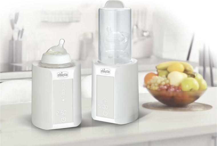 A CHICCO 2 az 1-ben multifunkciós készüléke egy kompakt egységben melegíti az anyatejet, a tápszert és a bébiételeket, valamint gyorsan sterilizálja az üvegeket és a kisebb tartozékokat. Kínál pontos programokat, akár 60 perc hőntartást, késleltetett indítást, automatikus kikapcsolást és kíméletes anyatej-melegítési módot a tápanyagok megőrzéséhez. Ideális megoldás, amely időt és helyet takarít meg a konyhában.