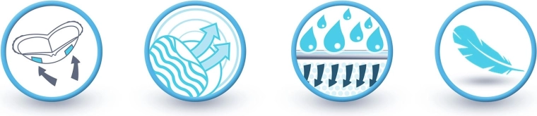 A könnyű, többrétegű és légáteresztő anyagok támogatják a légcserét és gondoskodnak a higiéniáról. Az öntapadó csíkok a betétet egész napos viselet során is biztonságosan a helyén tartják. Minden darab higiénikusan és diszkréten csomagolt, így utazáshoz vagy táskába téve a gyors cseréhez is ideális.