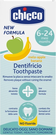 A CHICCO gyengéd gyermek fogkrém alma és banán ízzel kifejezetten 6–24 hónapos gyermekek számára készült. A xilit tartalom segít megelőzni a fogszuvasodást, míg az alacsony abrazivitású kíméletes formula nem károsítja a tejfogakat. Fluoridmentes, és támogatja a kellemes, mindennapi szájápolási rutint.