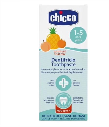 A CHICCO gyerek fogkrém kifejezetten a fogápolás első éveire lett kifejlesztve. Ötvözi a fluoridot a fogzománc erősítéséhez és a xilitot a fogszuvasodást okozó baktériumok szaporodásának korlátozásához. Nem abrazív formulája védi a tejfogak érzékeny zománcát, és mindennap gondoskodik a gyerekek szájüregéről.