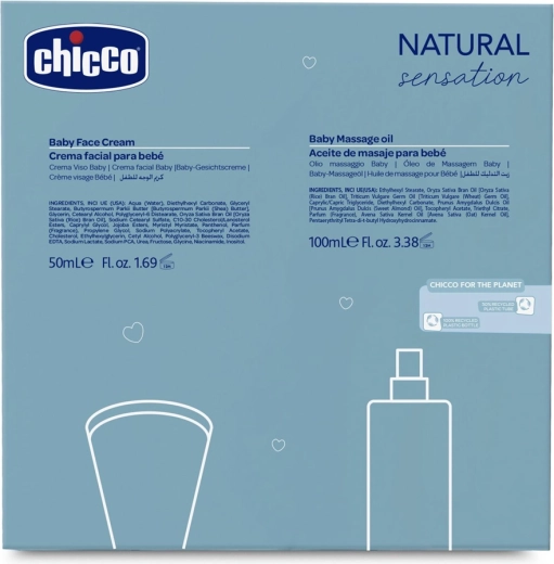 Fedezze fel az érzékeny bababőr kíméletes ápolását a CHICCO Natural Sensation We Are Two ajándékszettel újszülöttek számára. A szett tartalmaz egy masszázsolajat 100 ml és egy arckrémet 50 ml, amelyek táplálást, védelmet és hidratálást biztosítanak egész nap. Összetétele gyermekorvosok és bőrgyógyászok által jóváhagyott, tiszteletben tartja a bőr természetes pH-értékét, és ideális a száraz és érzékeny bőrre.
