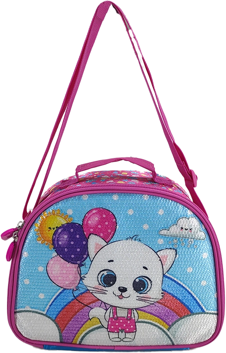 Aranyos táska kislányoknak cicával és színes lufikkal, mely kiemelkedik vidám dizájnjával, praktikus belső terével és tartós anyagaival. Ideális mindennapi viselésre és játékra, támogatja a gyerekek kreativitását és önállóságát.