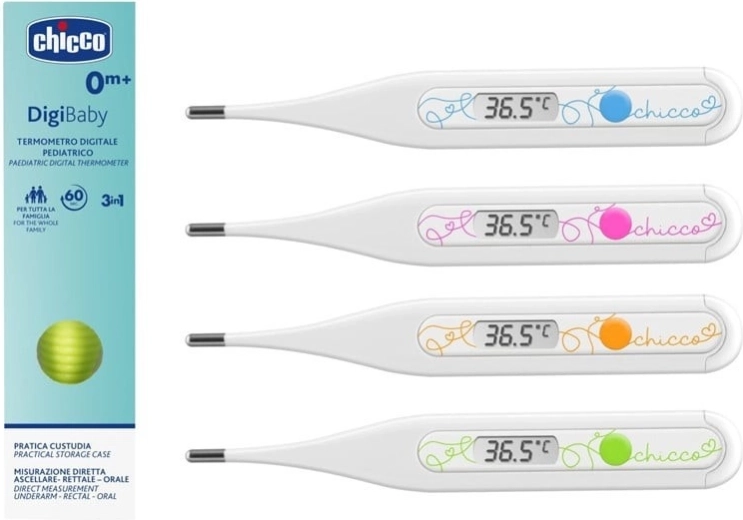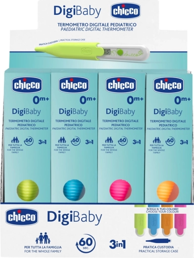 A Chicco Digi Baby zöld digitális hőmérőt a legkisebbek testhőmérsékletének kíméletes és megbízható mérésére tervezték. A speciálisan formázott csúcs növeli a mérés kényelmét, a sokoldalú használat (axilláris, rektális, orális) pedig rugalmasságot biztosít minden helyzetben. A mérés befejezése utáni hangjelzésnek és a lázriasztásnak köszönhetően mindig egyértelmű visszajelzést kap az eredményekről.