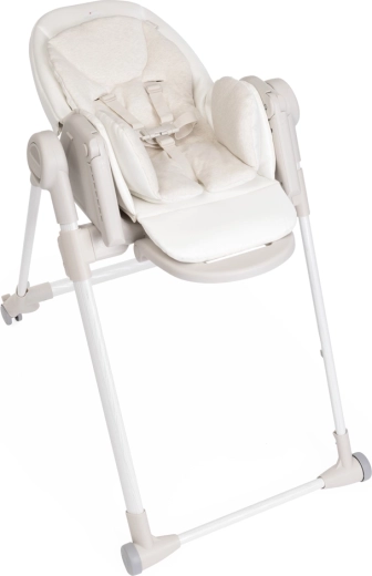 Tartozék a 100% bio pamutból készült, párnázott mini betét, amely gyengéden megtámasztja az újszülöttet, puha és biztonságos környezetet teremtve. A széket a biztonság és a stabilitás jegyében tervezték; mindig használja a biztonsági öveket, és kövesse a gyártó ajánlásait.