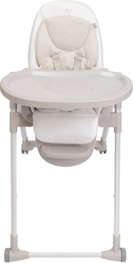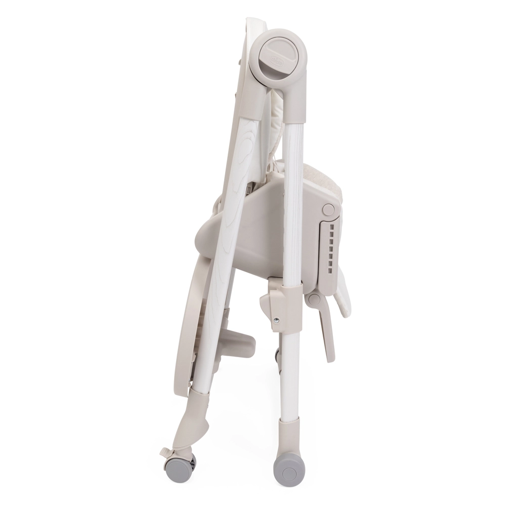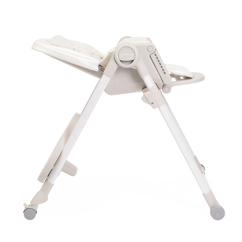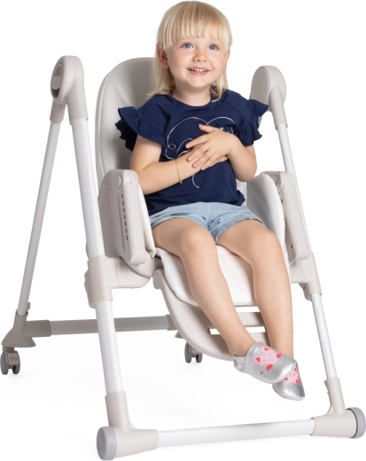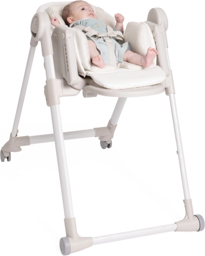 A praktikus funkciók megkönnyítik a mindennapokat: 9 magassági szint bármilyen asztalhoz igazítva, háttámla-állítás egészen teljes fekvésig a baba pihenéséhez, állítható lábtartó és levehető tálca a könnyű tálaláshoz és az asztalhoz toláshoz. A négy kerék gördülékeny mozgatást tesz lehetővé a lakásban, a kompakt, önállóan megálló összecsukás pedig helyet spórol. A 100% újrahasznosított PET szálakból készült huzat vízálló, kellemes tapintású és gépben mosható.