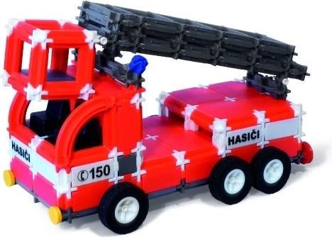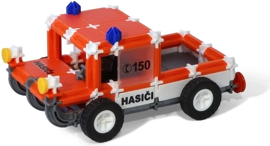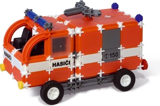 Építs tűzoltóautót emelőkosárral, nagy tartálykocsit forgatható lehetőséggel, valamint parancsnoki (műszaki) járművet. Nem hiányoznak a tematikus matricák sem: „HASIČI, RESCUE, FIRE”, és a segélyhívó 150 száma, amelyek segítenek a gyerekeknek elsajátítani a fontos biztonsági alapelveket.
