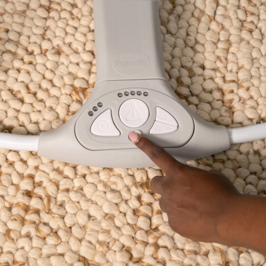 A 5 sebesség a TrueSpeed technológiával a gyermek növekvő súlyához igazodik, míg a WhisperQuiet csendes működést nyújt. A baba megnyugtatását 8 dallam és 3 természetes hang segíti hangerőállítással. A tápellátást USB-kábel biztosítja (a csomag része), így nincs szükség elemekre. A SlimFold kialakítás gyorsan összecsukható a hordozáshoz vagy tároláshoz.