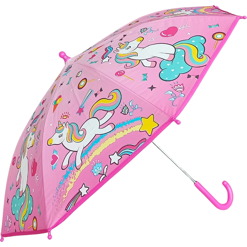 A bájos, mesés unikornis motívummal díszített gyermek esernyő egyaránt örömet szerez lányoknak és fiúknak. Könnyű szerkezetének és egyszerű kezelhetőségének köszönhetően a gyerekek önállóan is használhatják, ami fejleszti önállóságukat és felelősségtudatukat. A tartós anyag hosszú élettartamot és megbízható védelmet nyújt az esővel szemben.