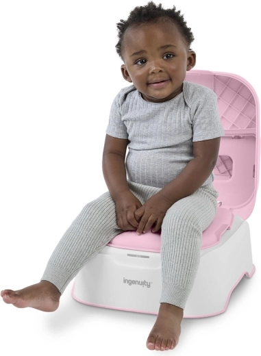 Az Ingenuity Prepare to Potty Pink okos megoldás, amely együtt nő gyermekével a bili első használatától egészen a WC önálló használatáig. A praktikus kialakításnak köszönhetően gyorsan átalakítható gyerekbiliből felnőtt WC-hez való szűkítővé, majd stabil, kétlépcsős fellépővé a WC-hez vagy a mosdóhoz.