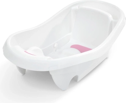 A formázott oldalak, a párnázott háttámla és a csúszásgátló betétek stabil helyzetben tartják a babát. A fürdetés kényelmes, felesleges csúszkálás nélkül.