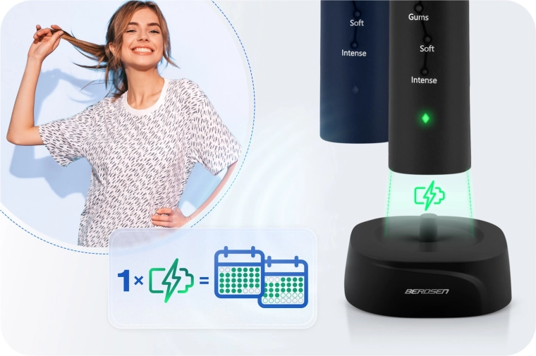 Fedezze fel a mindennapi kényelmet és a professzionális szájápolást a két darabos BERDSEN Galaxy Duo szónikus fogkefeszettel. Erőteljes teljesítmény, akár 40 000 mozdulat percenként, 6 tisztítási mód és 3 intenzitási szint a tökéletesen tiszta fogakért és ínyért. A csomagban 6 cserélhető fejet, 2 perces időzítőt 30 mp-es szakaszokkal, akár 50 napos üzemidőt egyetlen töltéssel és IPX8 vízállóságot talál – ideális pároknak és családoknak.