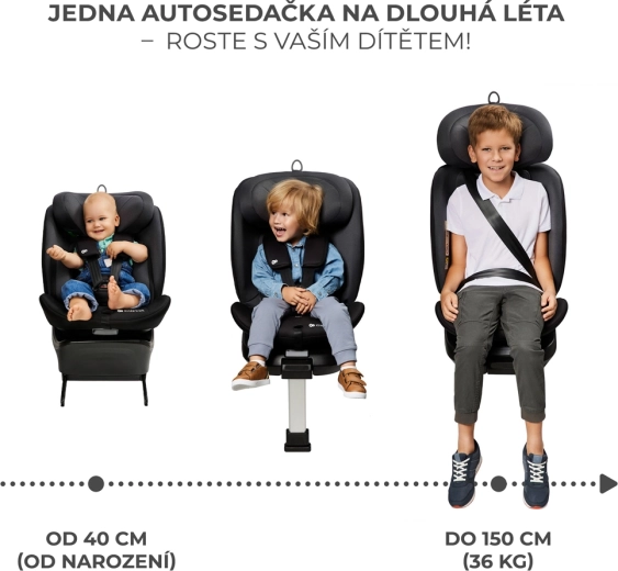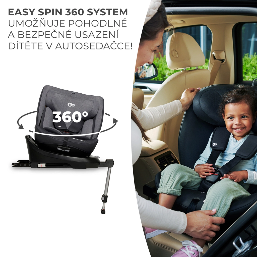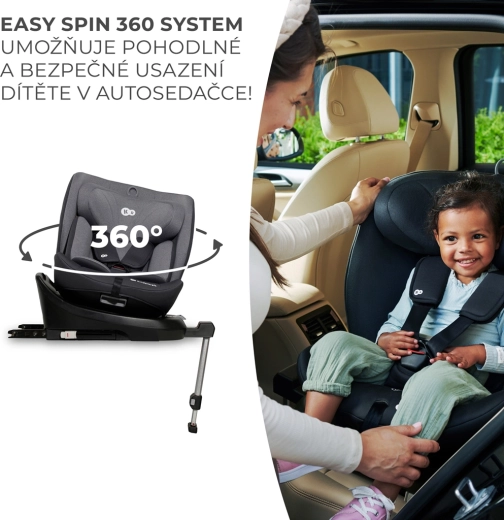 Az I-360 i-Size autósülés a gyermekkel együtt nő 40 és 150 cm között, lefedve az újszülöttől a nagyobb iskolás korig terjedő időszakot. Az EASY SPIN 360° rendszerrel egy kézzel saját maga felé fordíthatja az ülést a gyors és helyes bekötéshez. A ISOFIX rögzítés vizuális indikátorokkal és a támaszláb (100 cm-ig) szilárd és biztonságos rögzítést garantál.