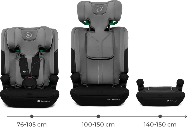 - 3 az 1-ben, 76–150 cm – kb. 15 hónaptól 12 éves korig, 140–150 cm között ülésmagasítóként is használható.