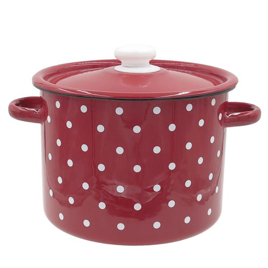Zománcozott lábas fedővel 5,5 l, piros pöttyös