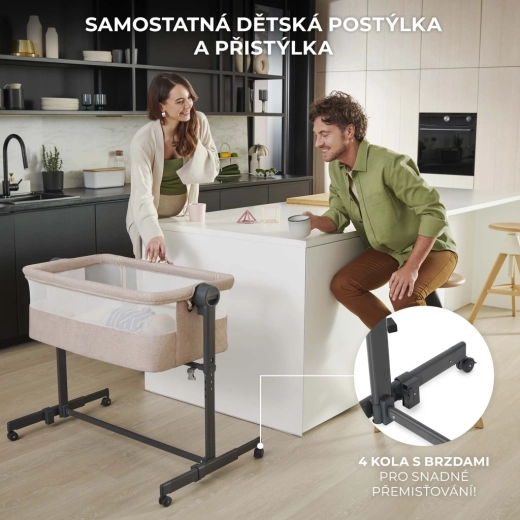 Pillanatok alatt átalakítható a szülői ágyhoz csatlakoztatható kiságyból önálló babaággyá. A 4 fékezhető keréknek köszönhetően könnyen oda gurítható, ahol épp szükség van rá.