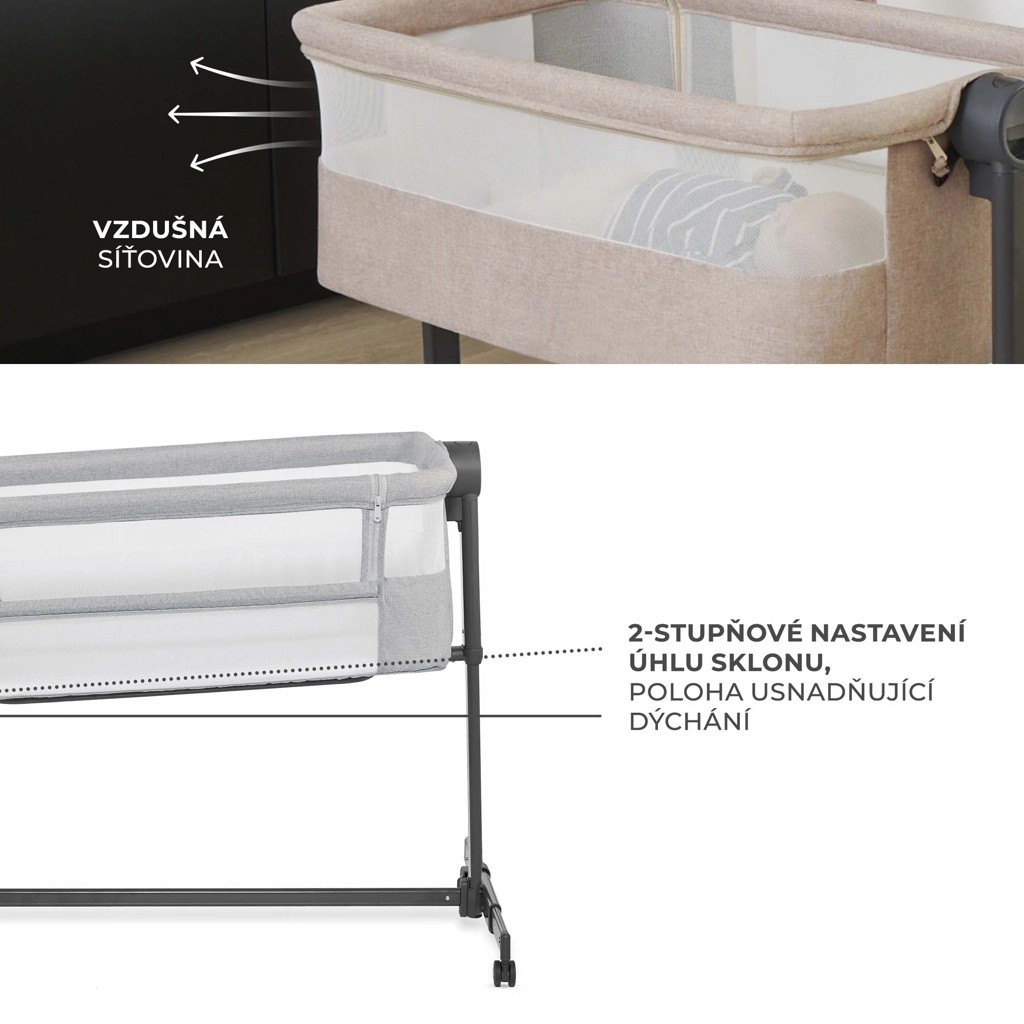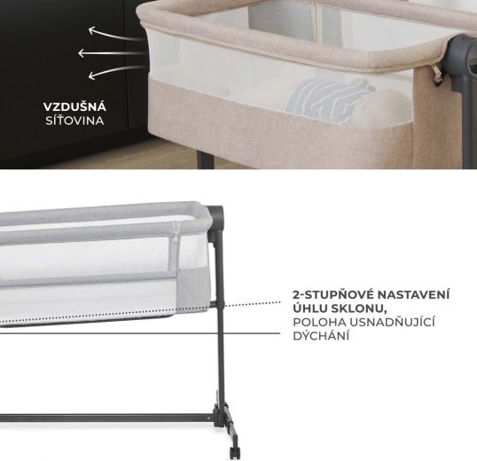 A teljes kerületén hálós oldalfalak javítják a levegőáramlást és megkönnyítik a baba felügyeletét. A félkemény matrac mosható lepedővel támogatja az egészséges alvást, és ellenáll a nedvességnek, a penésznek és az atkáknak.