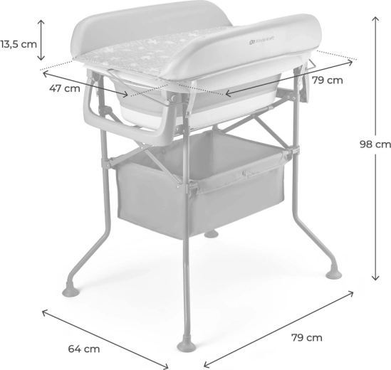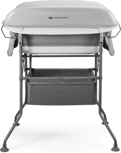 A KINDERKRAFT Bubbly Grey okos 2 az 1-ben megoldás a mindennapi babagondozáshoz. Biztonságos és kényelmes helyet kínál fürdetéshez és pelenkázáshoz, helyet és időt takarít meg, miközben az ergonomikus munkamagasságnak köszönhetően magas komfortot nyújt a szülőknek. A stabil váz csúszásgátló lábakkal és az elemek intuitív cseréje egyszerű, gyors használatot biztosít otthon és útközben egyaránt.