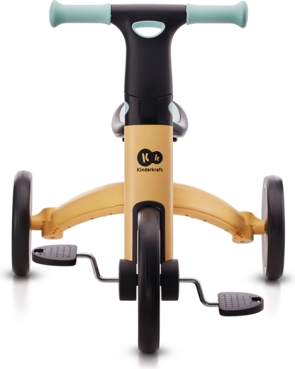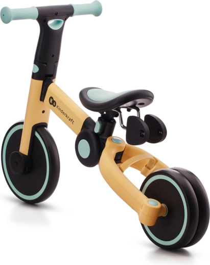 A Kinderkraft 4TRIKE Sunflower Blue átgondolt gyerekjármű, amely ötvözi a háromkerekű mini futóbiciklit, a minifutóbiciklit és a pedálos triciklit. A szerszám nélküli, gyors funkcióváltásnak köszönhetően pillanatok alatt a kis bringás képességeihez igazítható. Az alumínium váz alacsony tömeget és tartósságot garantál, míg a kompakt, összecsukható kialakítás megkönnyíti a hordozást és a babakocsi kosarában való tárolást.