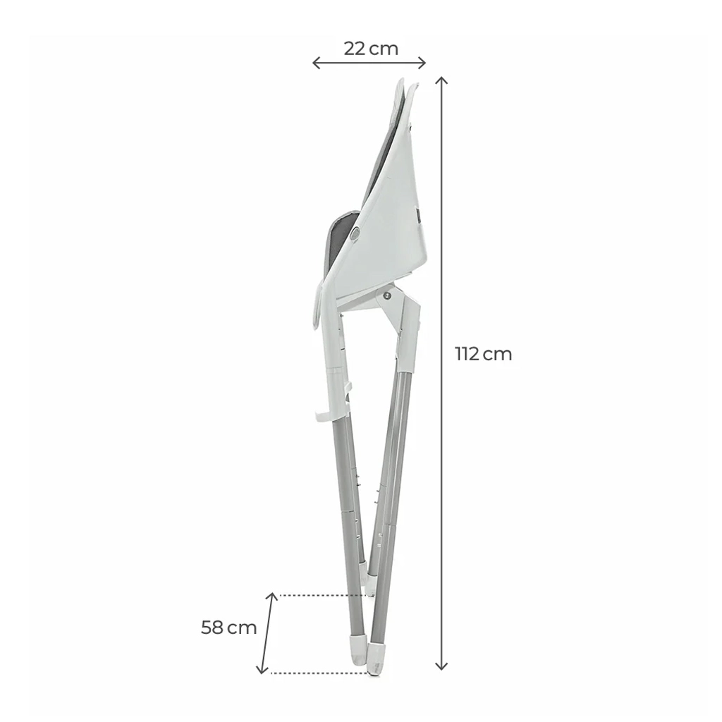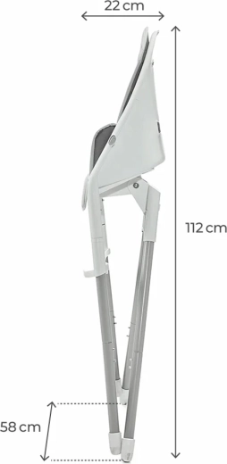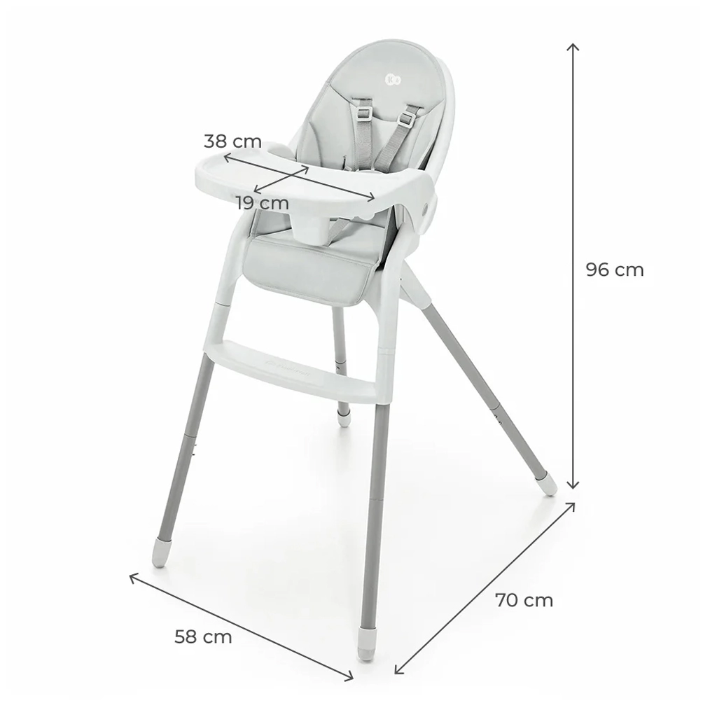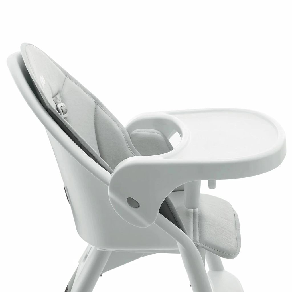 Az acél váz, az 5 pontos övek és a csúszásgátló lábak nagyfokú stabilitást és biztonságot nyújtanak minden étkezésnél. A tálca ütközésvédőként is funkcionál.