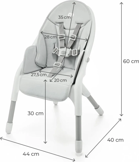 A Kinderkraft Dinnly 2 az 1-ben egy modern etetőszék, amely elkíséri gyermekét az első hozzátáplálástól egészen az óvodás korig. Átgondolt kialakításának köszönhetően pillanatok alatt átalakítható magas székből 15 kg-ig használható alacsony ülőkévé. Könnyen összecsukható, stabil és kényelmes – ideális választás minden otthonba.