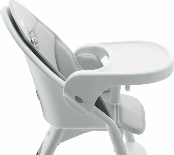 A párnázott betét puha, vízálló és könnyen tisztítható, így az étkezés utáni rendbetétel pillanatok kérdése. A levehető tálca biztonságos, tanúsított anyagokból készült, tálcaként és praktikus ütközőként is szolgál. A helyes ülésben lábtámasz segít, míg az 5 pontos biztonsági öv megbízhatóan a helyén tartja a gyermeket.