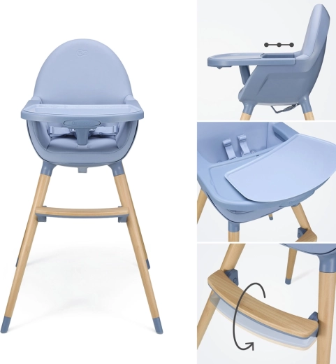 A KINDERKRAFT FINI 2 Nordic Breeze praktikus 2 az 1-ben etetőszék a mindennapi etetéshez és a kreatív pillanatokhoz. Az eltávolítható lábaknak köszönhetően könnyen válthat a magas székről az alacsonyra, így zökkenőmentesen alkalmazkodik a növekvő gyermek igényeihez. A lemosható ökobőr huzat és a dupla, állítható tálca megkönnyítik a tisztítást és rendben tartást.