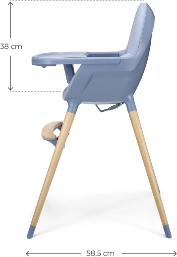 A stabil bükkfa lábak csúszásgátló végekkel, az 5 pontos biztonsági övek és a lábközti ütköző magas szintű biztonságot nyújtanak. Az ergonomikus háttámla, a széles és mély ülés, valamint az állítható lábtartó gondoskodnak a kényelemről étkezés és játék közben is. A háttámlába integrált fogantyú megkönnyíti az egykezes hordozást.