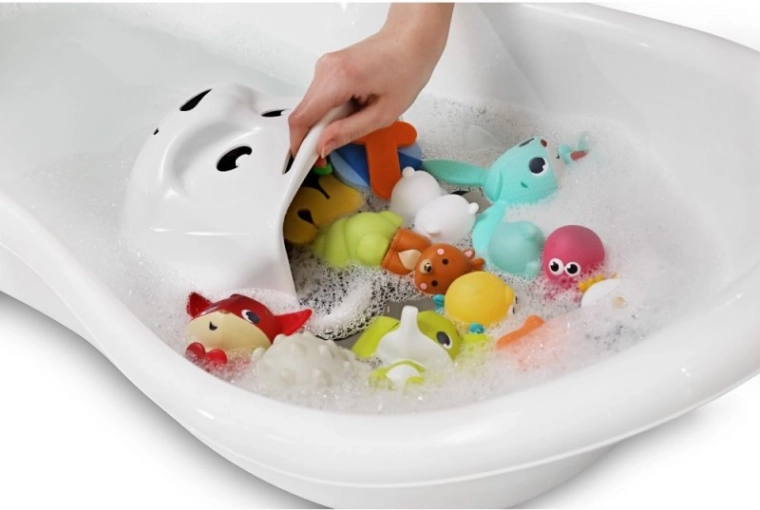 A legkisebbek számára a panda vidám társ fürdés közben – segít a játékok kihalászásában, a víz és a hab öntésében, miközben rendet tart. A praktikus 24,5 × 24 × 15 cm-es méret jól illik a kád fölé és a zuhanykabinba is.