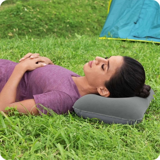 A praktikus 42 × 26 × 10 cm méret kényelmesen illeszkedik a fej alá, és bármilyen matraccal vagy derékaljjal használható. A kis tömegnek és a gyors felfújásnak köszönhetően pillanatok alatt használatra kész. A csomag tartalmaz javítófoltot is apró sérülések esetére.