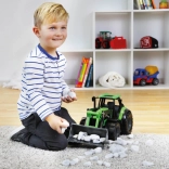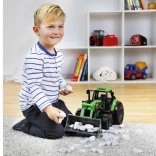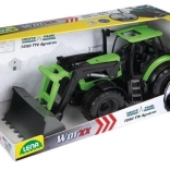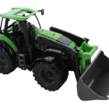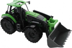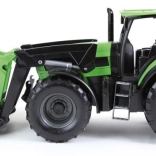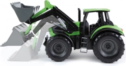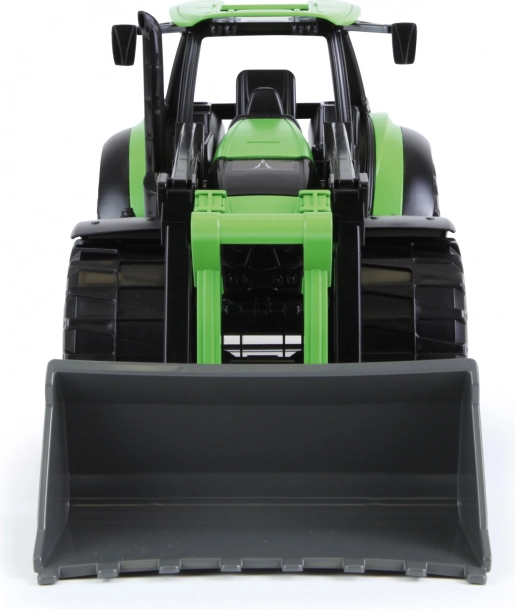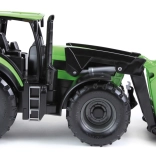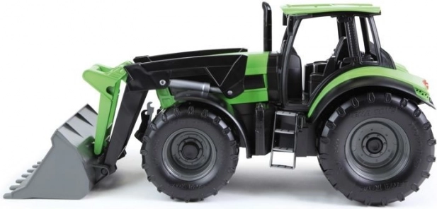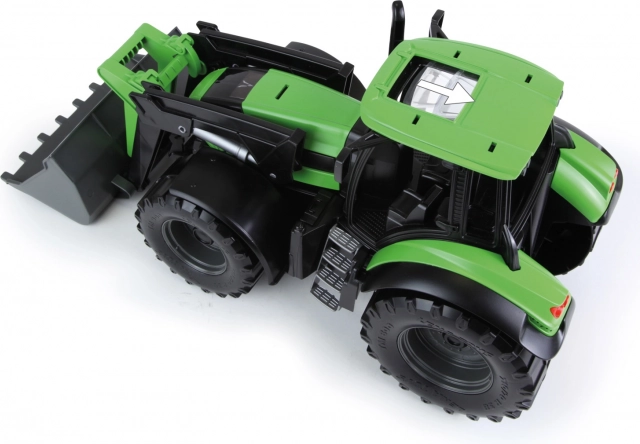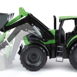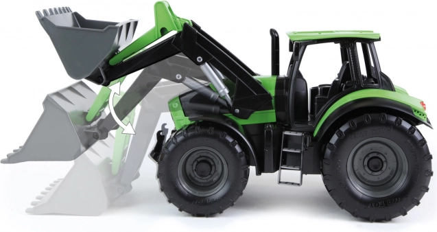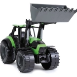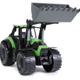 Robusztus gyerek traktor elülső kanállal, DEUTZ FAHR Agrotron dizájnban, élethű kidolgozással 1:15 méretarányban. Funkcionális első kanállal rendelkezik, minőségi műanyagból készült, és benti és kinti játékra egyaránt alkalmas. Hossza 45 cm.