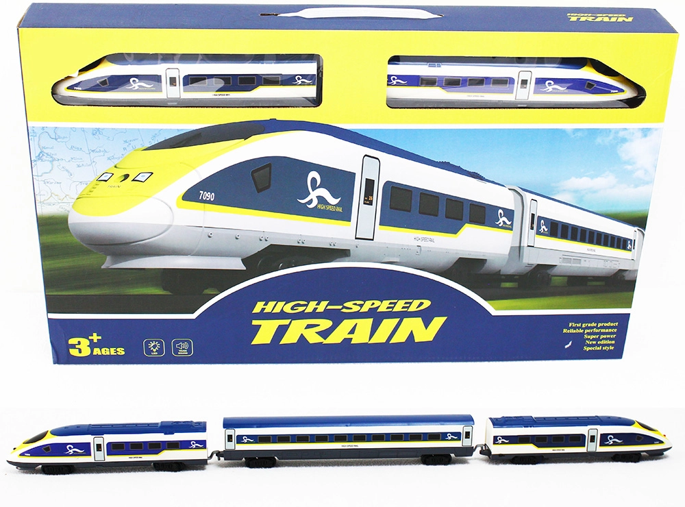 Az elektromos vasút valósághű nagysebességű vasúti élményt nyújt a kis vonatrajongóknak. A készlet tartalmaz 2 mozdonyt (1× elemes, 1× meghajtás nélküli), 2 vagont és 29 sín elemet különféle pályák építéséhez. A gomb megnyomására aktiválódnak a fény- és hangeffektek, amelyek fokozzák az igazi utazás hangulatát.