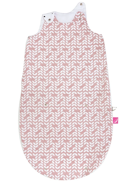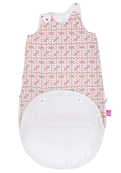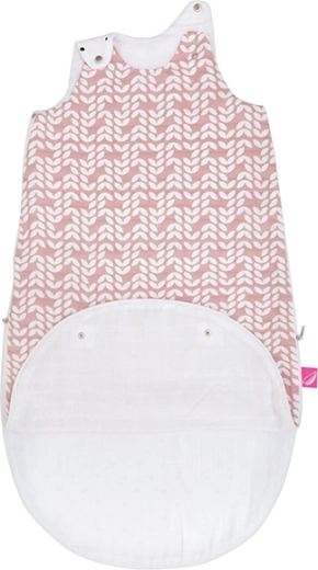 Átgondolt részletek, mint a vállon lévő patentok a nyílás szűkítéséhez és az alsó, patentos hosszabbító rész lehetővé teszik a két méretben való használatot: 3–6 hónap összepatentolva és 6–18 hónap kipatentolva. A zsák három réteg 100% pamut muszlinból készült töltet nélkül – finom, puha, levegős és kíméletes az érzékeny bőrhöz.