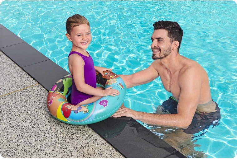 A sima varrások és a minőségi PVC kellemes viselést és hosszú élettartamot biztosítanak, még gyakori használat mellett is a medencénél.
