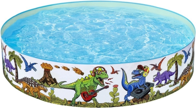 Gondoskodjon a gyerekek szórakozásáról és felfrissüléséről a forró napokon a dinoszaurusz mintás, kerek Bestway medencével. Családi, 183 cm átmérő, erős vinil oldalfalak és PVC padló a nagyobb tartósságért. A színes dinoszaurusz minta játékra ösztönöz, az egyszerű összeszerelés időt takarít meg, a legfeljebb 946 l kapacitás pedig bőséges helyet nyújt a pancsoláshoz.
