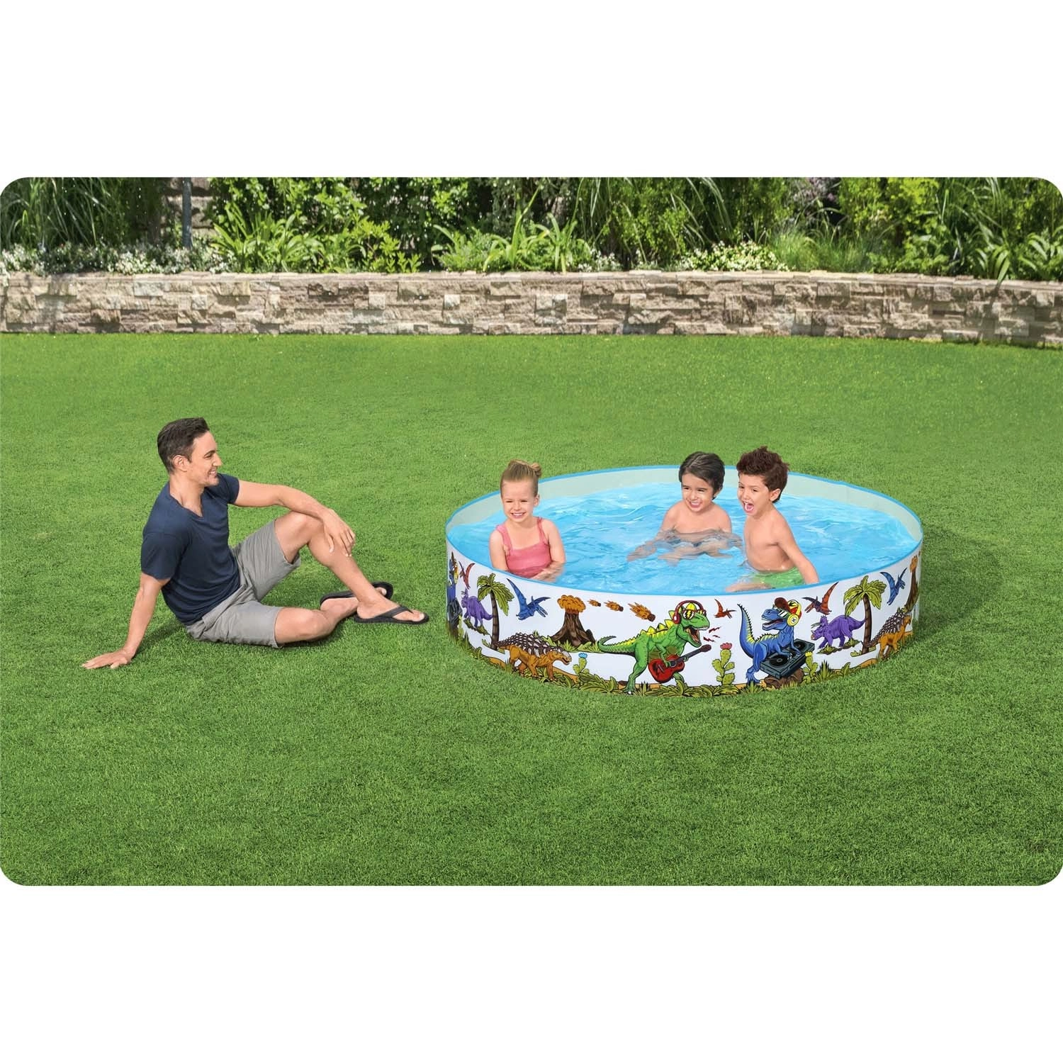 A bájos Bestway gyerekmedence dinoszaurusz mintával ideális választás kertbe és teraszra egyaránt. Az 183 cm-es átmérő elegendő helyet kínál testvéreknek és barátoknak, az alacsony profil pedig megkönnyíti a gyerekek számára a biztonságos bejutást és a vízben való játékot.