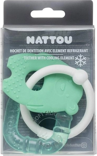 NATTOU szilikon rágóka hűsítő résszel ideális segítség a fogzás időszakában. A texturált felület finoman masszírozza az ínyt, a vízzel töltött hűsítő elem enyhülést hoz a fájdalomra, a könnyen megfogható forma pedig tökéletes a kis babakezek számára. Kiváló minőségű, BPA-mentes szilikonból készült, kellemes, matt textúrával.
