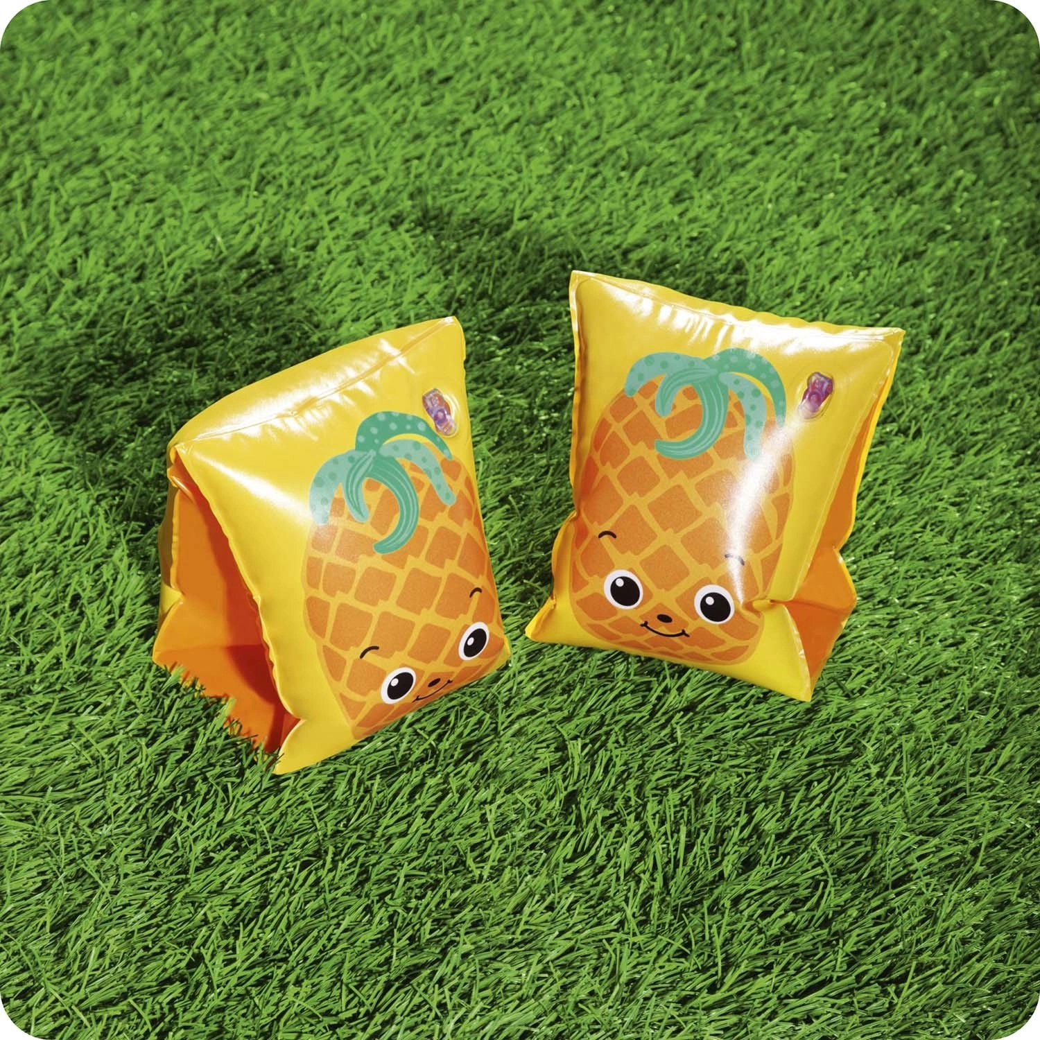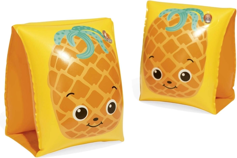 Fedezze fel a vízi szórakozást a BESTWAY felfújható karúszóival gyümölcsös dizájnnal. A két független kamra növeli a biztonságos felhajtóerőt és a kényelmet, míg a görögdinnye és ananász játékos motívumai motiválják a gyerekeket az úszástanulásra és a vízi játékra.