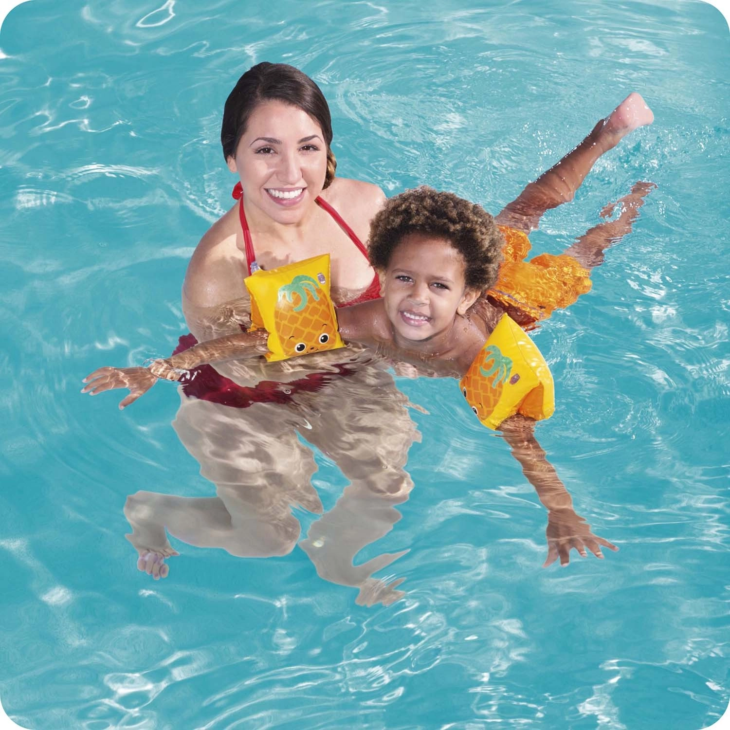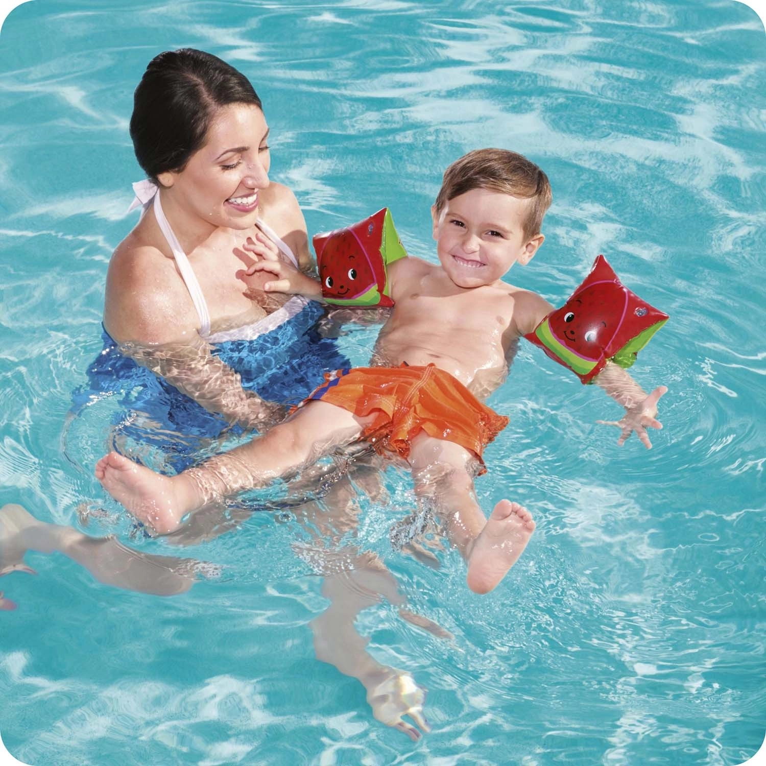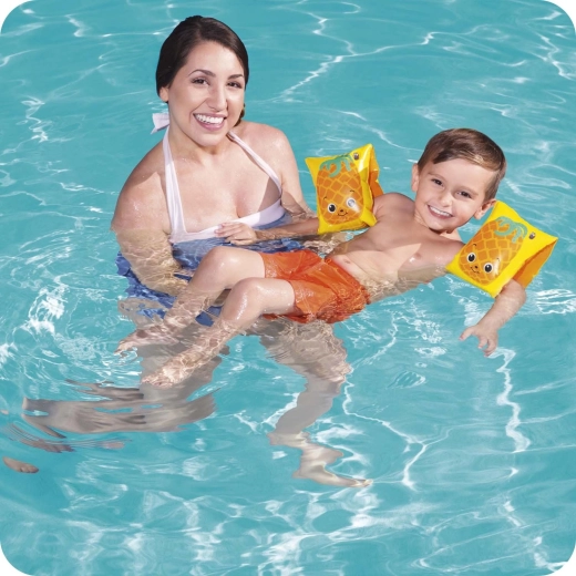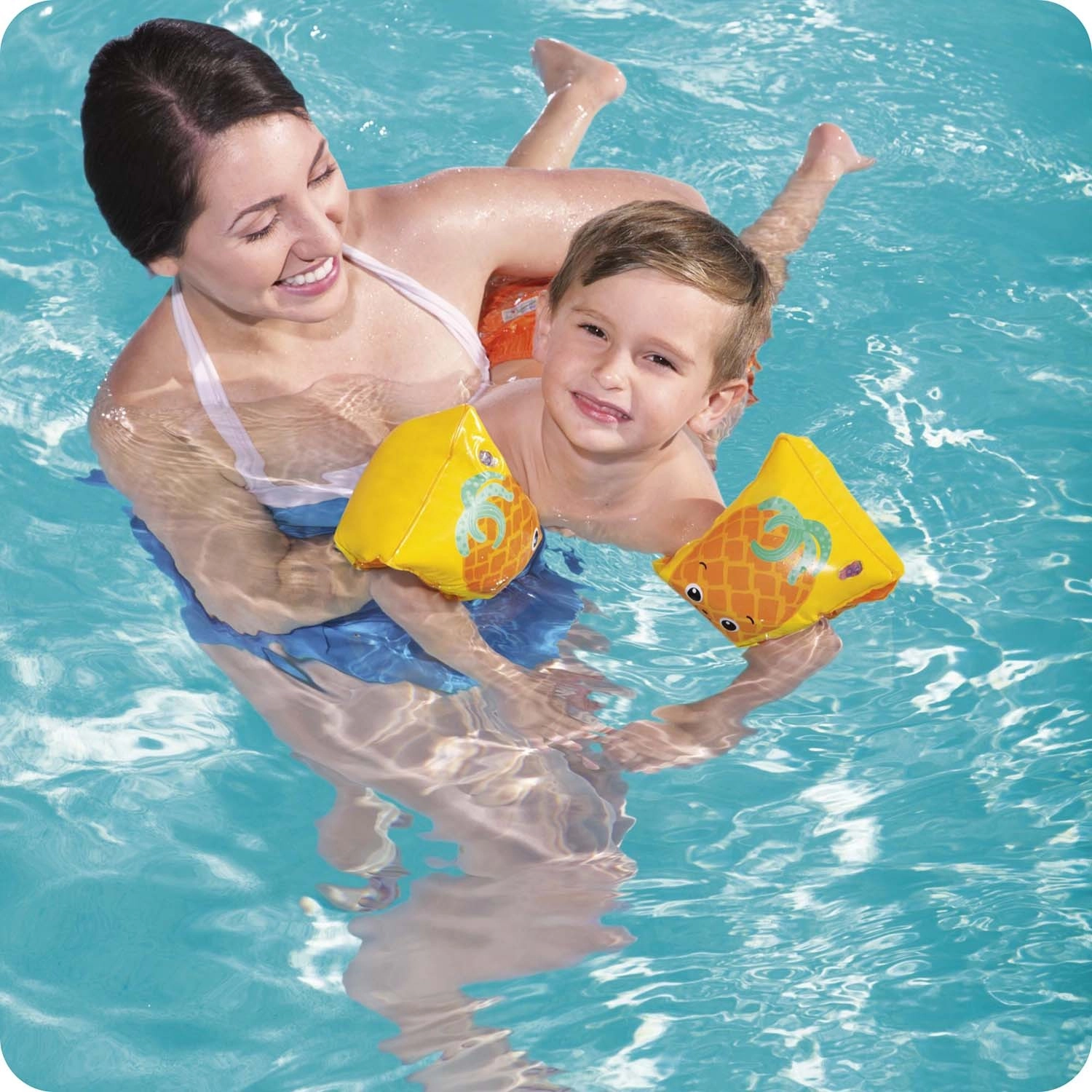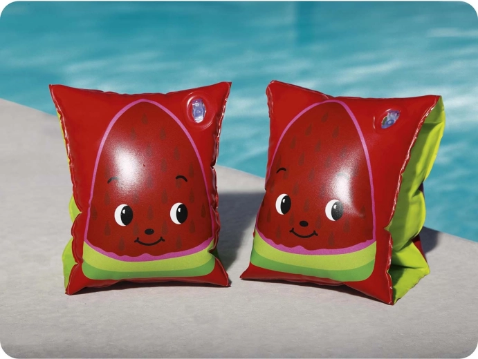 Vidám BESTWAY gyermek úszókarok gyümölcs mintákkal, amelyek segítenek a kis úszóknak magabiztosabban mozogni a vízben. A két légkamra stabil felhajtóerőt ad, a élénk színek és aranyos minták pedig növelik a láthatóságot és a vonzerőt. Ideális 3–6 éves, 18–30 kg súlyú gyermekek számára.