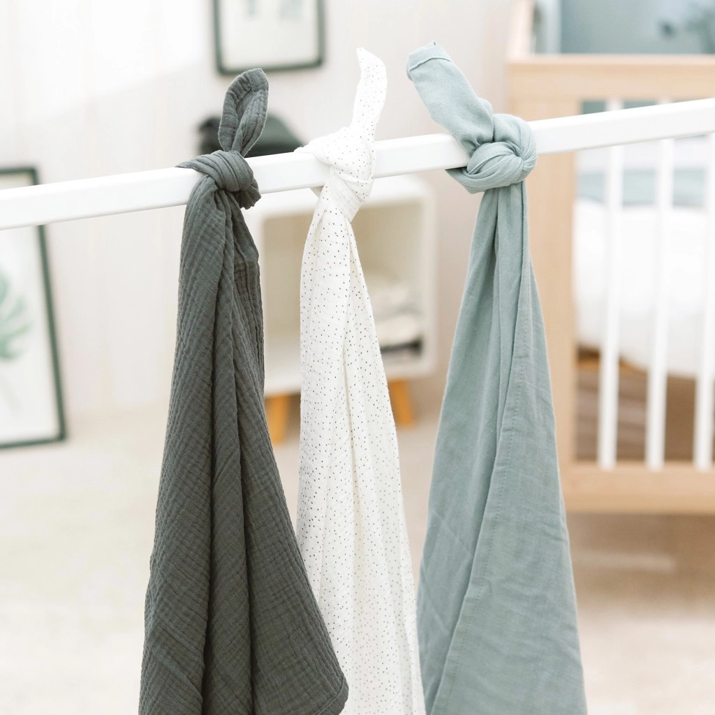 - Sokoldalú felhasználás – pólyázás, takaró, törölköző, lepedő, alátét vagy szoptatási kendő.