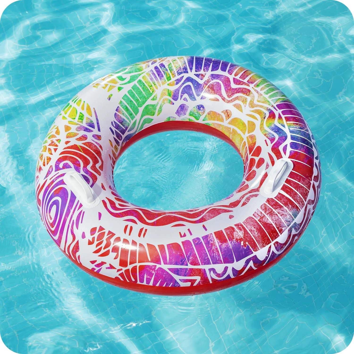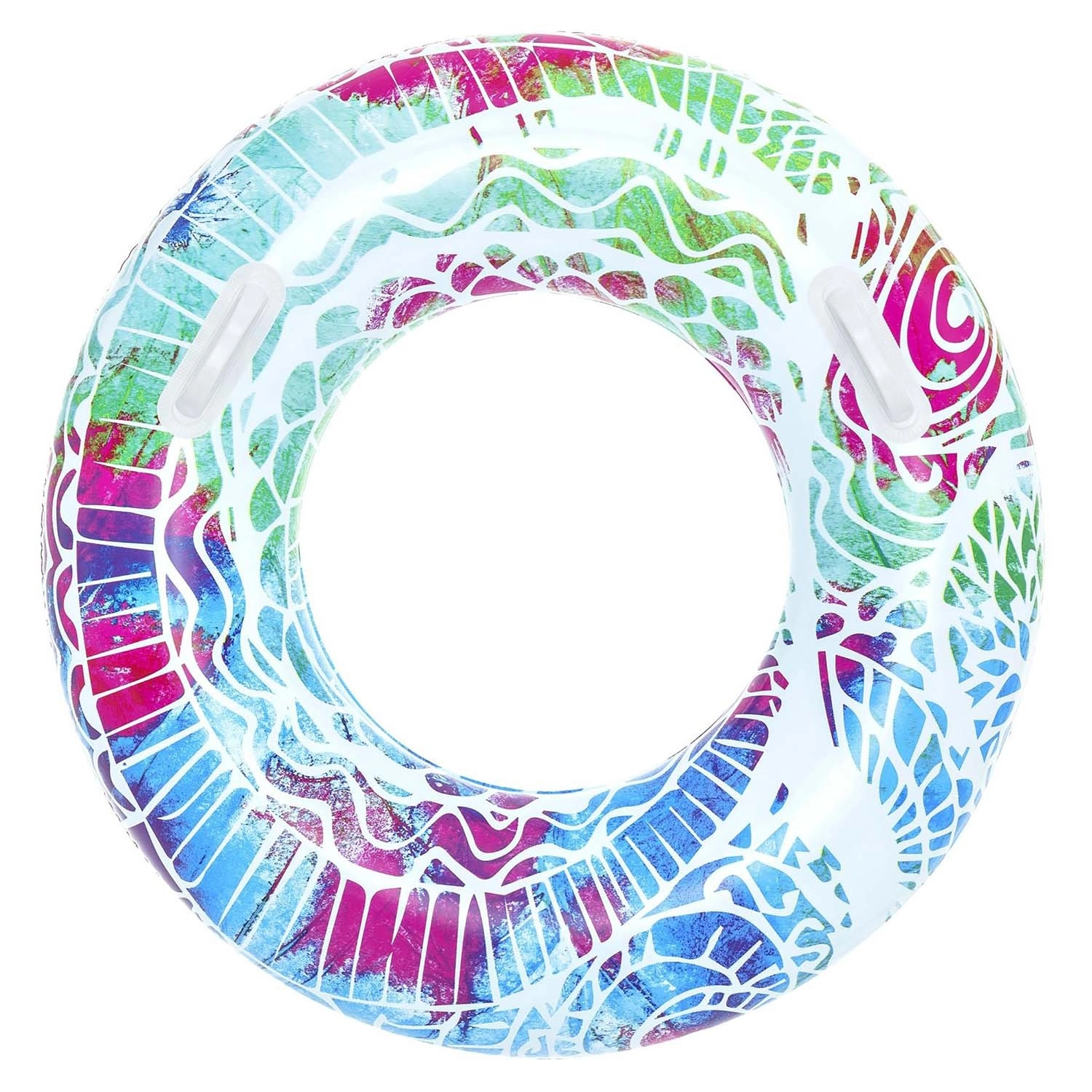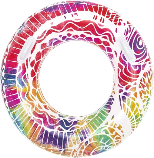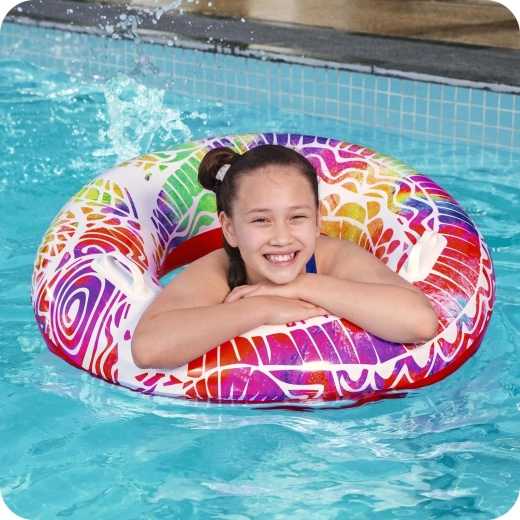 Ez a stílusos úszógumi strapabíró PVC-ből készül, ellenáll a napnak és a sós víznek, így remek választás medencéhez és a strandra is. A 91 cm-es nagy átmérő kényelmes támaszt és jobb felhajtóerőt biztosít 10 éves kortól.