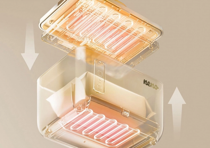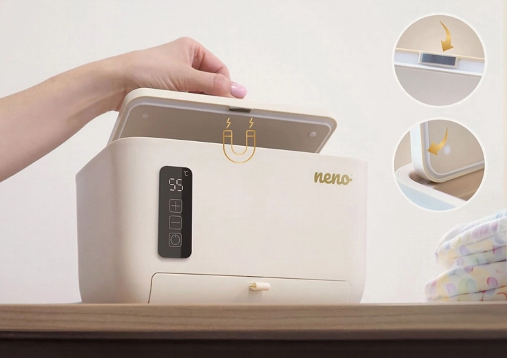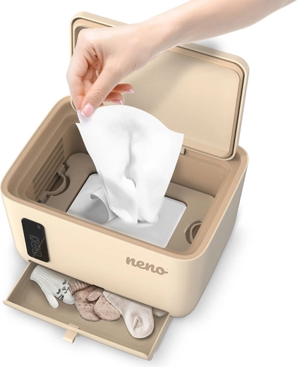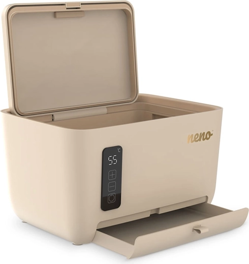 Biztosítson babájának kényelmet minden pelenkacsere során. A Neno Calme egy intelligens melegítő nedves és száraz törlőkendőkhöz, állítható 45–55 °C hőmérséklettel, amely ideális nedvességet tart fenn és megelőzi az érzékeny bőr irritációját. Gyors felmelegítést, csendes működést, mágneses, tömítéssel ellátott fedelet és praktikus kiegészítő fiókot kínál – mindezt elegáns, biztonságos kivitelben érintésvezérléssel.