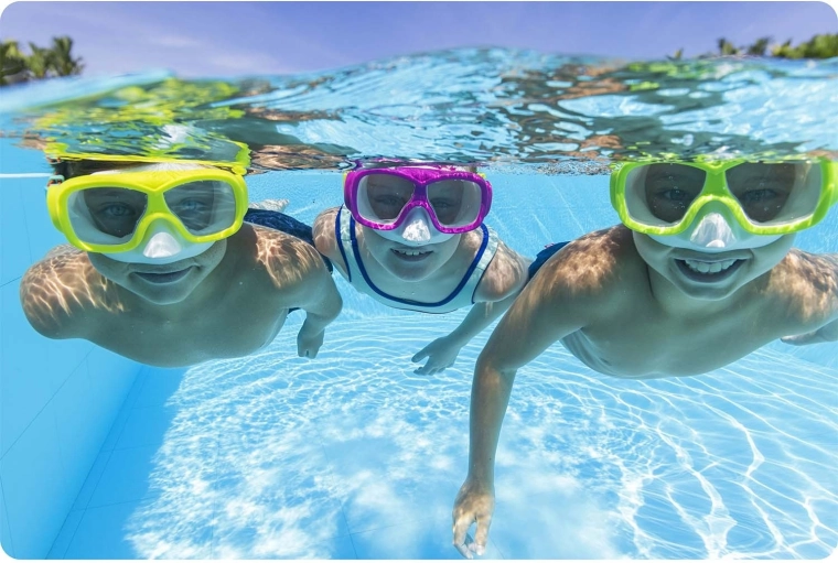 A állítható szilikonpántnak köszönhetően a maszk stabilan és biztonságosan ül úszás és vízi játék közben is. Az univerzális gyerekméret latexmentes kialakítással ideális választás az érzékeny bőrre és a mindennapi vízi szórakozáshoz.