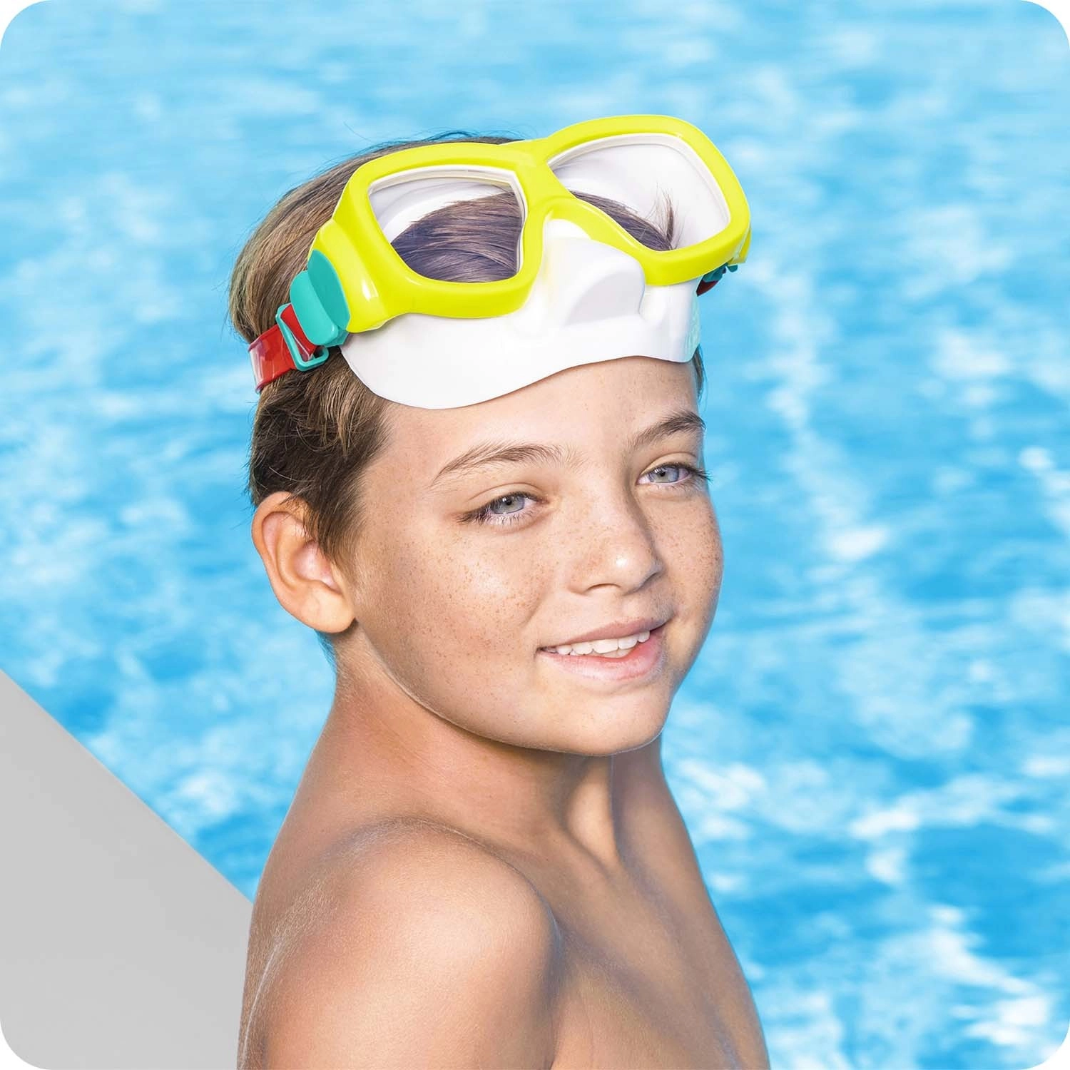Fedezd fel az úszás és a sznorkelezés örömét ezzel a gyerek Bestway maszkkal, amely széles látómezőt, kényelmes archoz illeszkedést és állítható szíjat kínál a biztos tartáshoz. A UV-védelemmel ellátott polikarbonát lencsék óvják a szemet és tiszta kilátást nyújtanak a víz alatt. Latexmentes anyagokból, univerzális méretben 7 éves kortól.