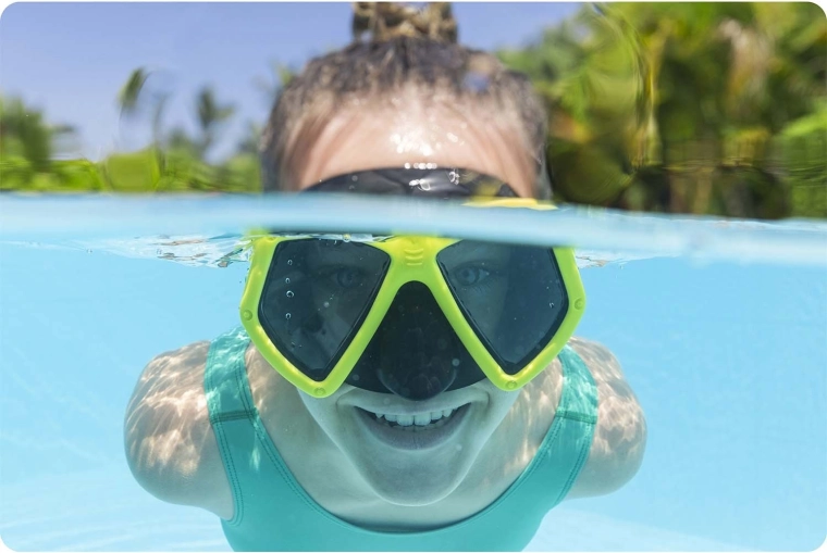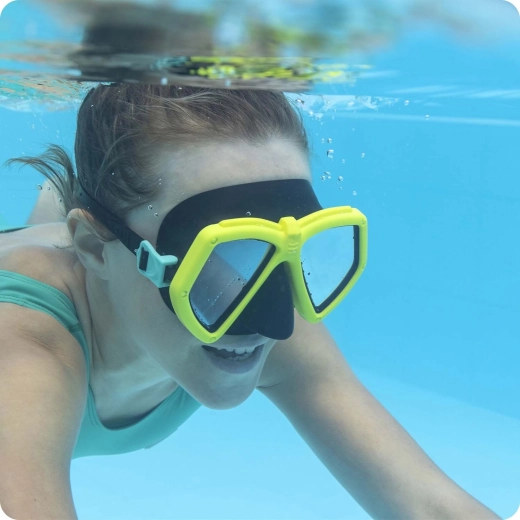 Megbízható és kényelmes maszkot keres úszáshoz és sznorkelezéshez? A sárga Bestway búvármaszk univerzális mérettel készül, kiválóan zár az arcon, és minimálisra csökkenti a víz bejutását. A tartós, UV-védelemmel ellátott polikarbonát lencsék tiszta kilátást biztosítanak víz alatt és erős napsütésben is.